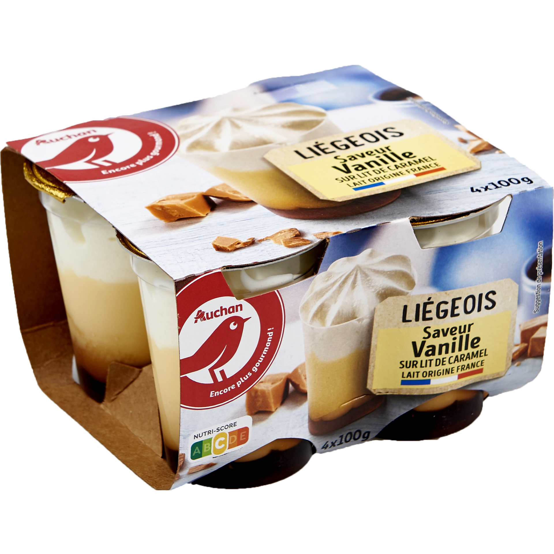 Auchan Kedvenc Liegeois vanília ízű tejszínes desszert karamella öntettel 4 x 100 g