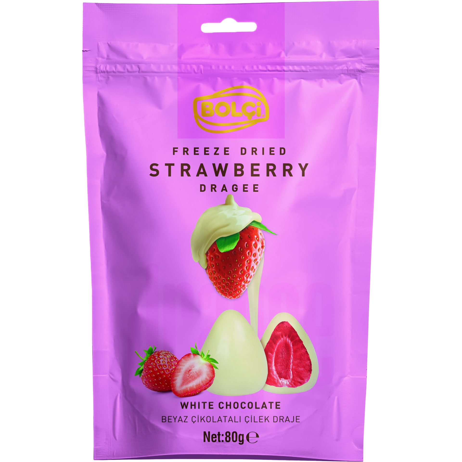Bolçi fehércsokoládéval bevont liofilizált eper 80 g