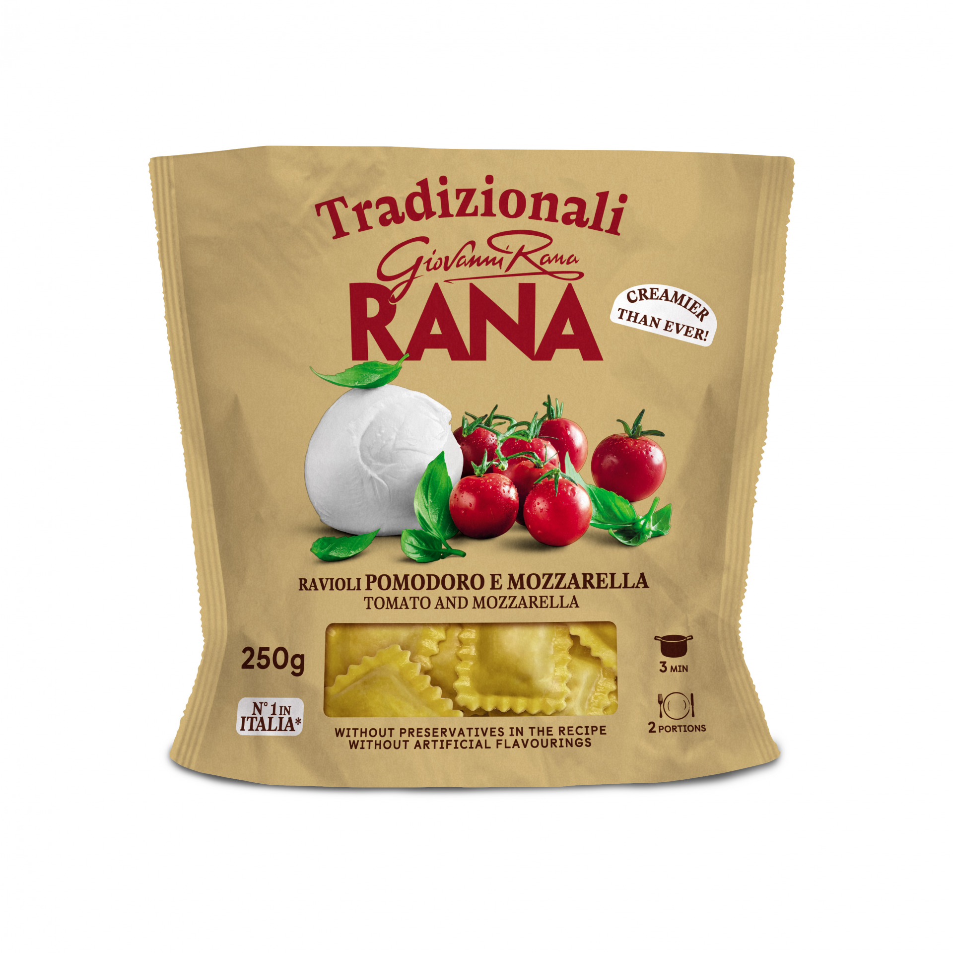 Leshegy út 11.Gyártó és/vagy élelmiszer vállalkozó telephely országMagyarországAZO színezékekNem tartalmazízfokozókNem tartalmazMesterséges édesítőszerekNem tartalmazMesterséges ízesítőszerekNem tartalmazMesterséges színezékekNem tartalmazMesterséges tartósítószerekNem tartalmazMSG glutamátNem tartalmazMásodlagos márkaGiovanni RanaTészta jellegeGépiTöltött tésztaIgenTöltött tészta ízesítéseparadicsomos-mozzarellásTészta formájaEgyéb