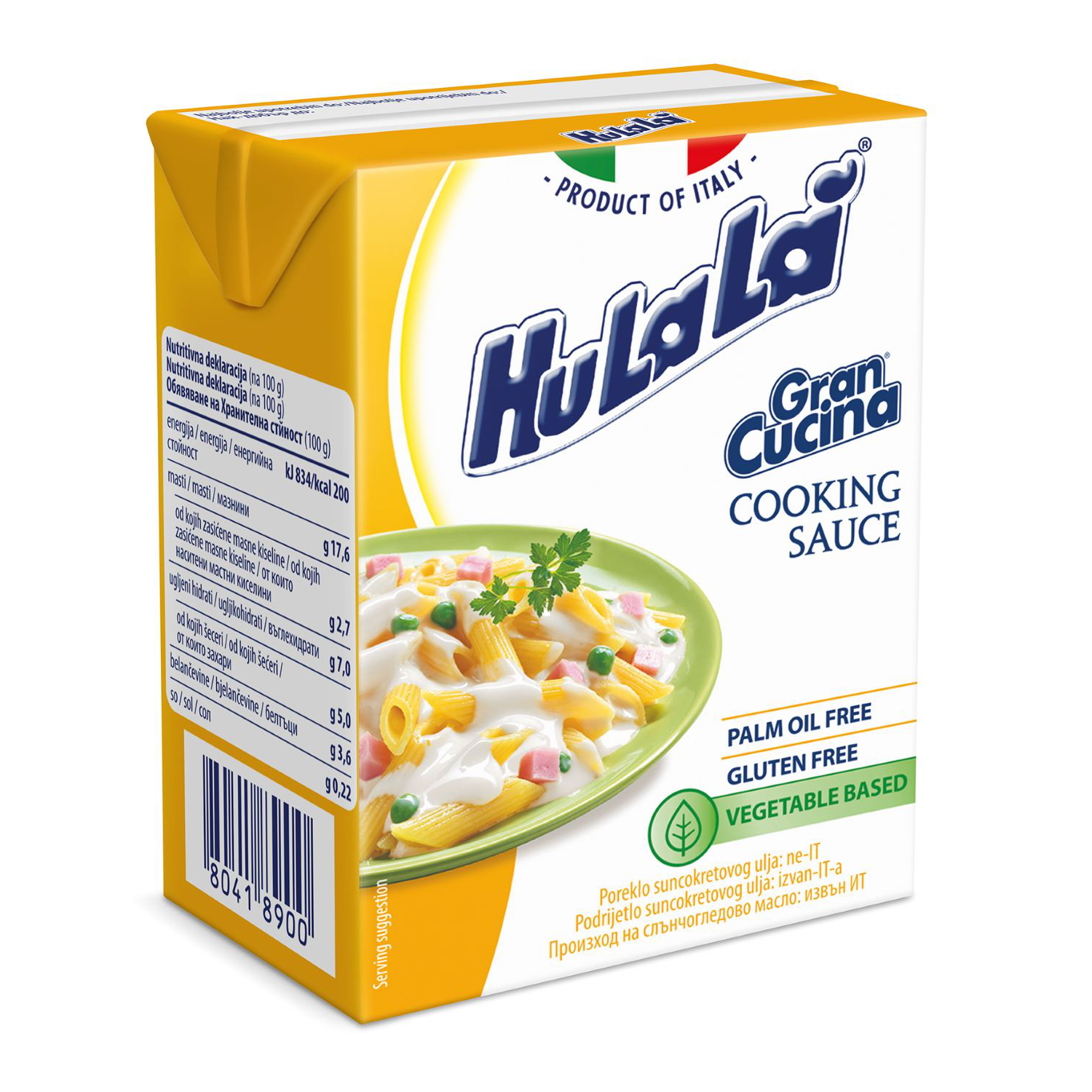 TermékjellemzőkSzármazási országOlaszországForgalmazóKönig-Units Kft.4060 BalmazújvárosBöszörményi u. 65.Gyártó és/vagy élelmiszer vállalkozó telephely országOlaszországGyártó és/vagy élelmiszer előállító telephely azonosító jelölésOlaszországFelhasználási feltételekFőzéshezOltalom alatt álló eredet megjelölésNemOltalom alatt álló földrajzi jelzésNemBiztonsági figyelmeztetésNe fagyassza le.AZO színezékekNem tartalmazízfokozókNem tartalmazMesterséges édesítőszerekNem tartalmazMesterséges ízesítőszerekNem tartalmazMesterséges színezékekNem tartalmazMesterséges tartósítószerekNem tartalmazMSG glutamátNem tartalmazLaktózmentesNemTejet szolgáló állat fajtája vagy növényi termékMarhaZsírtartalom23Tejszín fajtájaNövényi krém