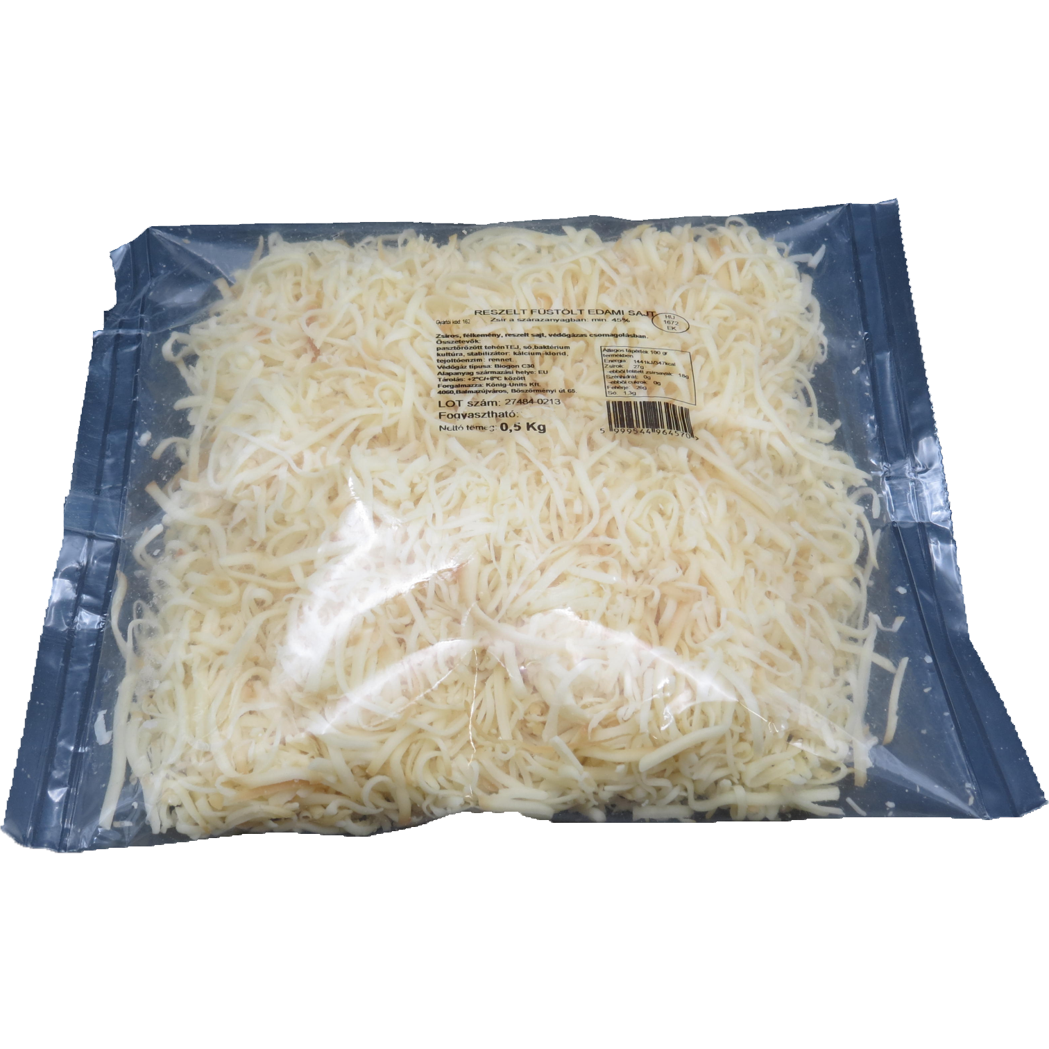 TermékjellemzőkSzármazási országMagyarországForgalmazóKönig-Units Kft. 4060 Balmazújváros Böszörményi út 65Gyártó és/vagy élelmiszer vállalkozó telephely országMagyarországFelhasználási feltételek--Oltalom alatt álló eredet megjelölésNemOltalom alatt álló földrajzi jelzésNemBiztonsági figyelmeztetés--LaktózmentesNemNemespenészNemSajt típusaFélkemény sajtSajt kiszerelés formája500 g-os zacskóbanSajt fajtájaEdami