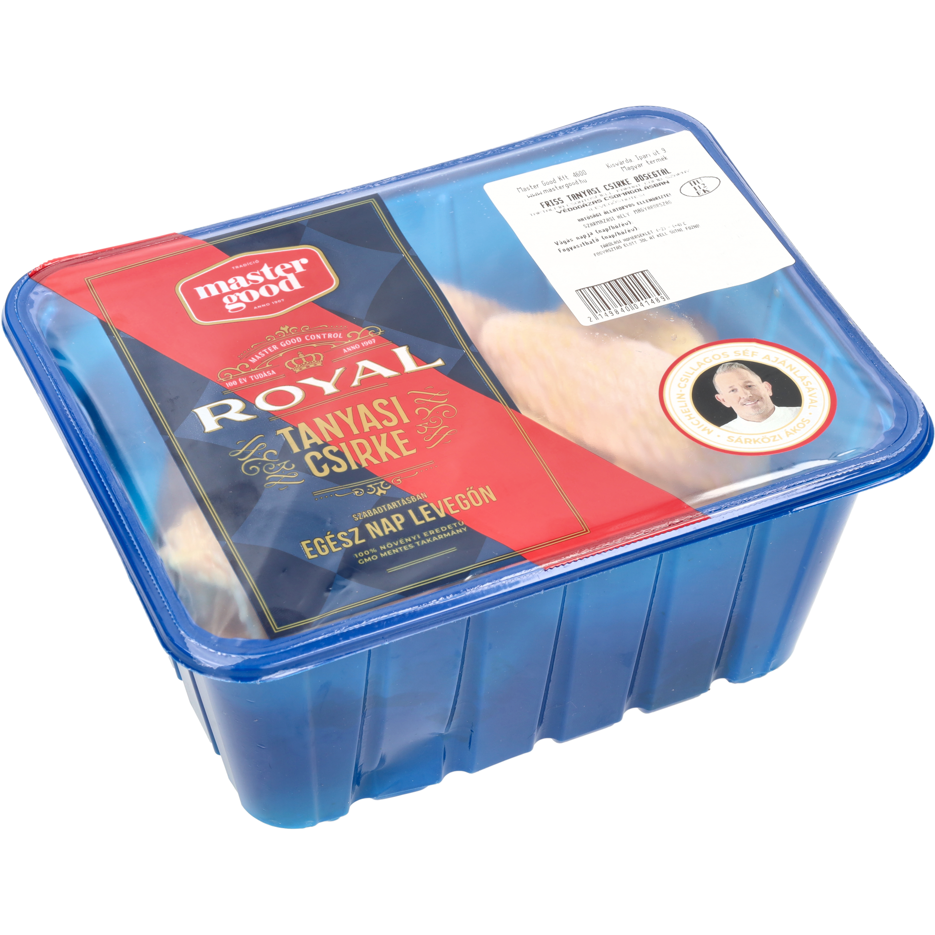 TermékjellemzőkSzármazási országMagyarországForgalmazóMASTER GOOD KFT 4537 Nyírkércs PETŐFI U.41Gyártó és/vagy élelmiszer vállalkozó telephely országMagyarországÉlőállat tartási technológiaszabadtartásosFelhasználási feltételekFogyasztás előtt jól át kell sütni, főzni.Az állat születési helyeHUOltalom alatt álló eredet megjelölésNemOltalom alatt álló földrajzi jelzésNemHasznált védjegyekMagyar TermékÁllat levágási helyeMagyarországÁllat tenyésztési helyeMagyarországBiztonsági figyelmeztetésFogyasztás előtt jól át kell sütni, főzni.BőrösIgenCsontos vagy csont nélküliCsontos